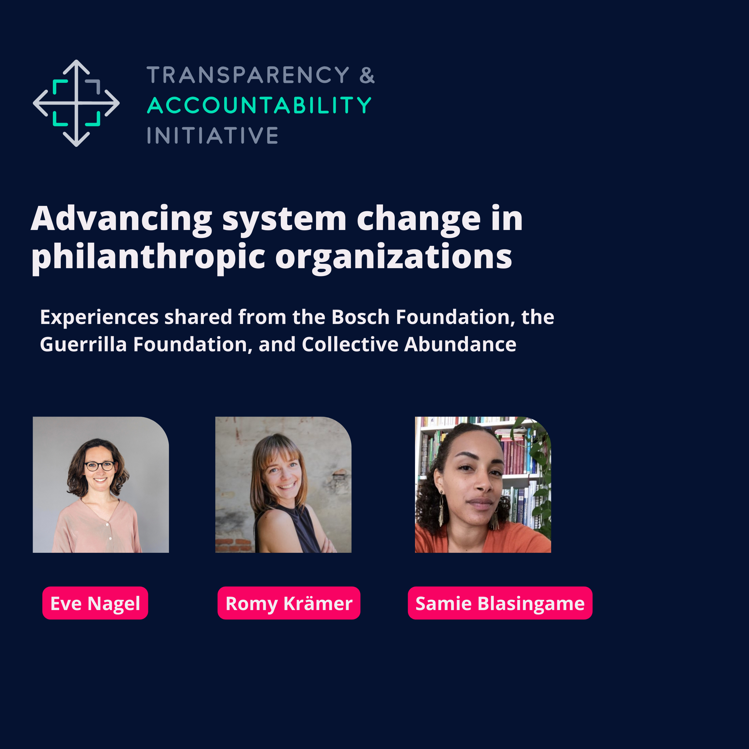 Eve Nagel from the Bosch Stiftung Words into action: Advancing system change in philanthropic organizations (transparency-initiative.org)