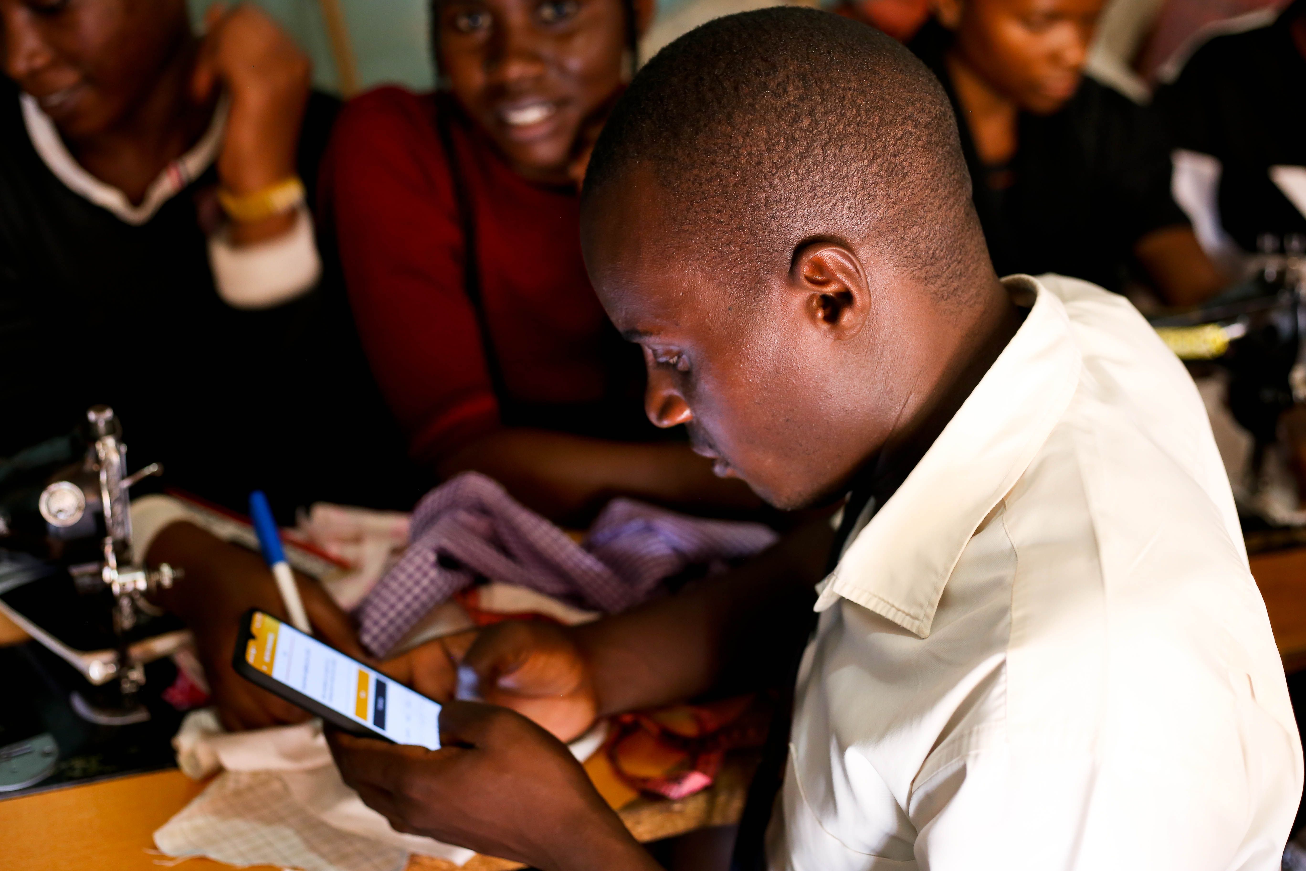 Jackson, a volunteer with Civil Society Unleashed (CSU), uses Integrity Action’s DevCheck app to monitor Ssomero Uganda, a project in Kampala. Photo Credit: Anthony Mwami/Restless Development
