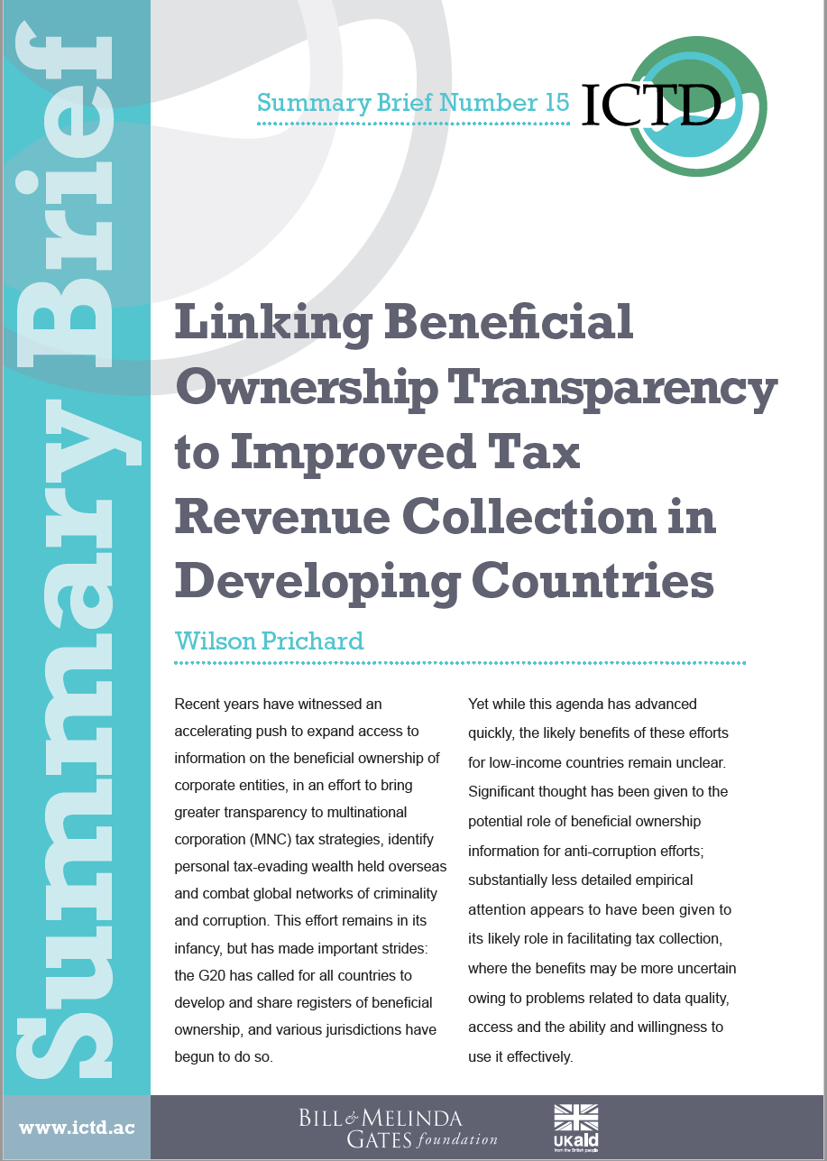 Recent years have witnessed an accelerating push to expand access to information on the beneficial ownership of corporate entities, in an effort to bring greater transparency to multinational corporation (MNC) tax strategies, identify personal tax-evading wealth held overseas and combat global networks of criminality and corruption. This effort remains in its infancy, but has made important strides: the G20 has called for all countries to develop and share registers of beneficial ownership, and various jurisdictions have begun to do so.