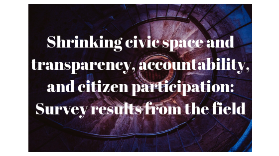 More detailed survey findings can be found in the slide deck, “Shrinking Civic Space: Survey Responses from Transparency, Accountability, and Citizen Participation Organizations.”