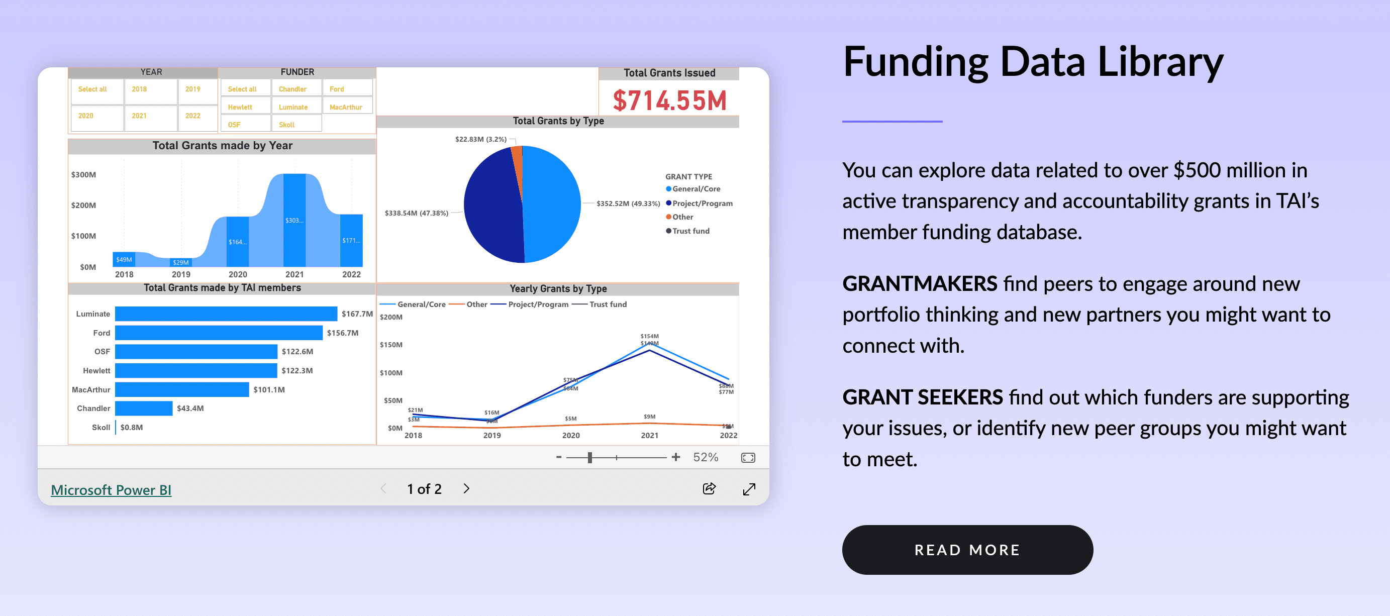 This visual report paints a vivid picture of the trends shaping the TPA funding landscape by integrating detailed analyses, interactive graphs, charts, and tables. Whether you're a funder, grantee, civil society organization, non-governmental organization, journalist, or researcher, we're thrilled to share snippets that will inspire you to explore further on your own.